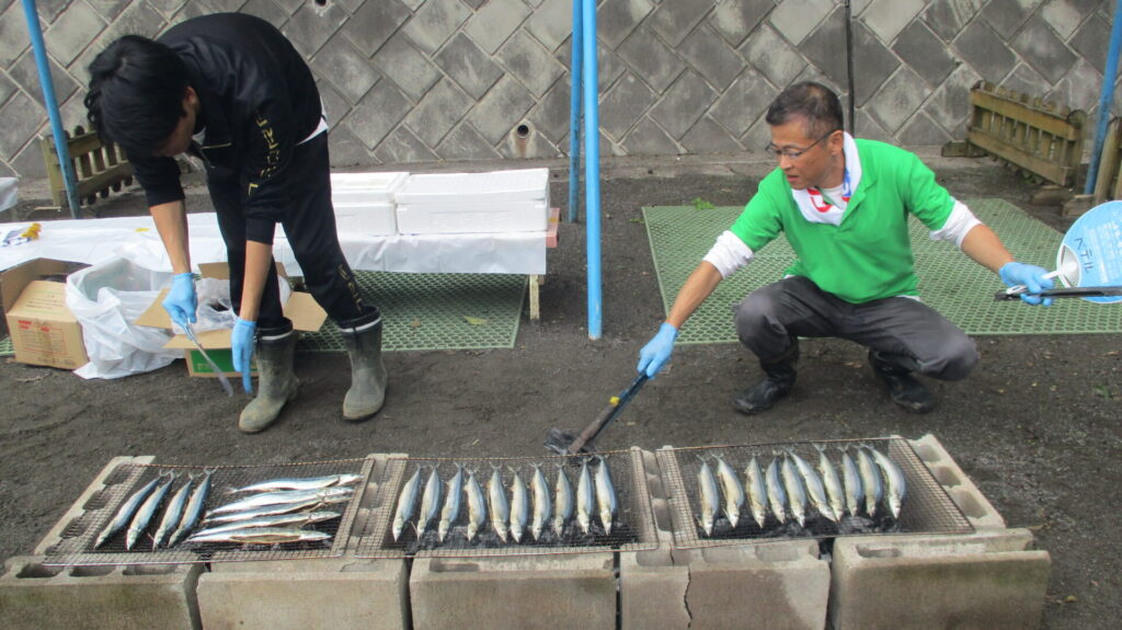 さんまを焼き始めると、辺りに香ばしい匂いが漂い始めました。