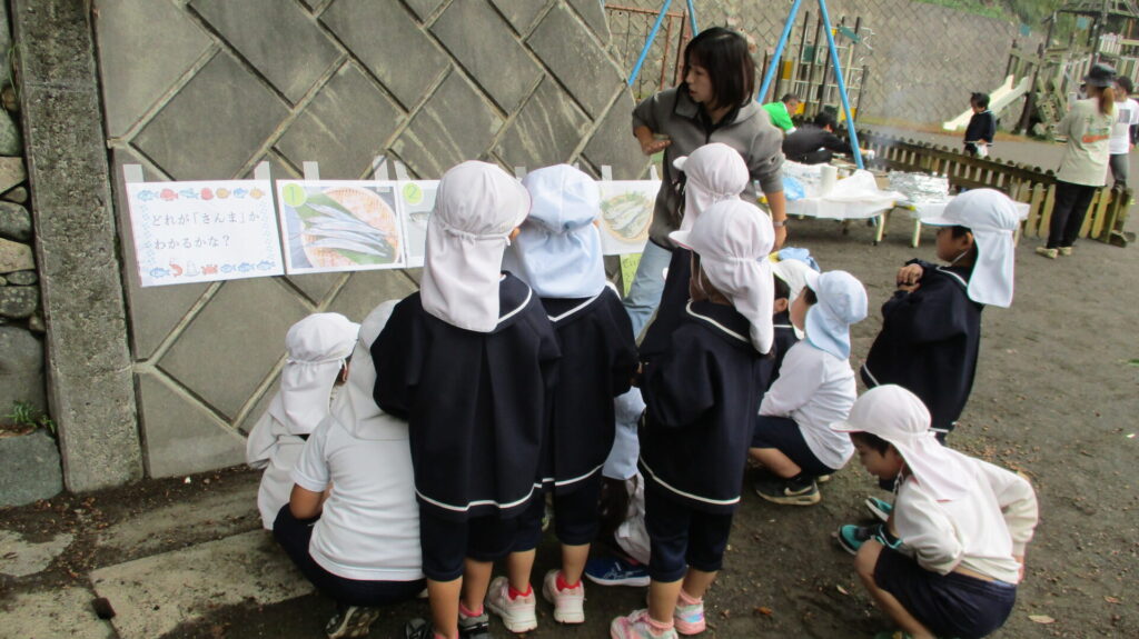 調理のスタッフが『さんまはどれだ⁈』のクイズも作ってくれ、写真を見て、さんまを見て、見比べて…。