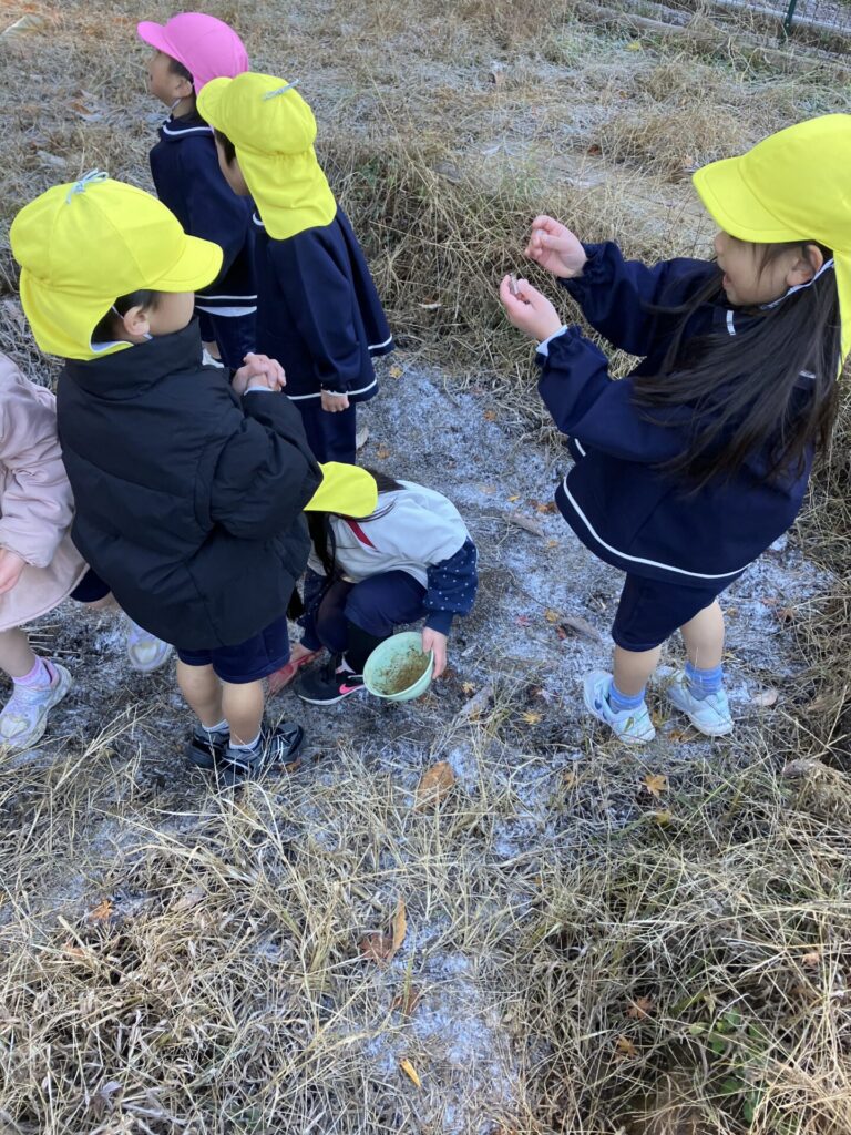 今日は、とても寒い朝でした calendar_today 2025年12月5日 『朝は厳しい冷え込みです。』と天気予報で言っていた通り ベテル保育園にも、厳しい寒さがやってきて、花壇には3㎝程の、霜柱ができていました。 ごっこ遊びで使う机は、子どもの手形がはっきりつく程、真っ白でした。 原っぱも、霜柱ができていて 子ども達は「冷たい!」と体を震わせながらも、霜柱を手に取ったり、足で踏んでみたりして 冬の訪れを楽しんでいました。