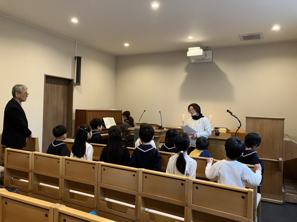 保育園の部屋とは違う、教会の雰囲気の中、礼拝をしました。