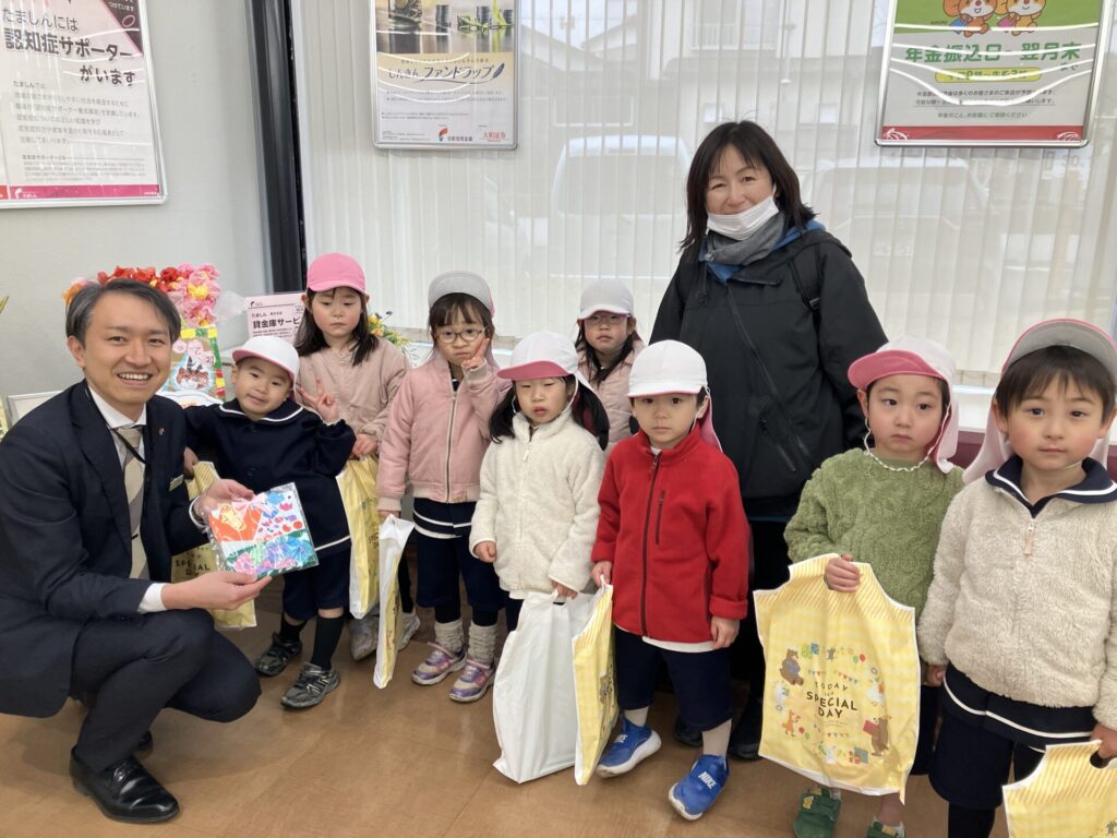 4歳児さくらぐみは、たましん恩方支店と恩方郵便局へ…。