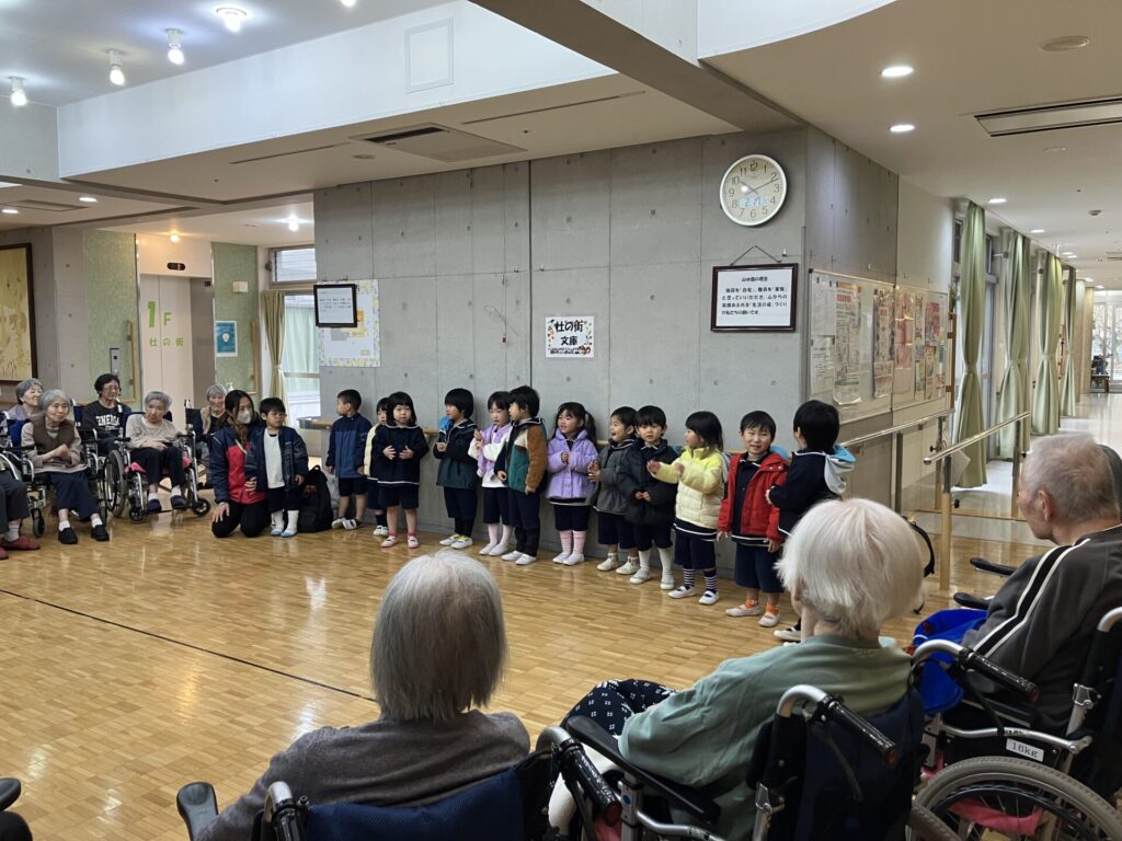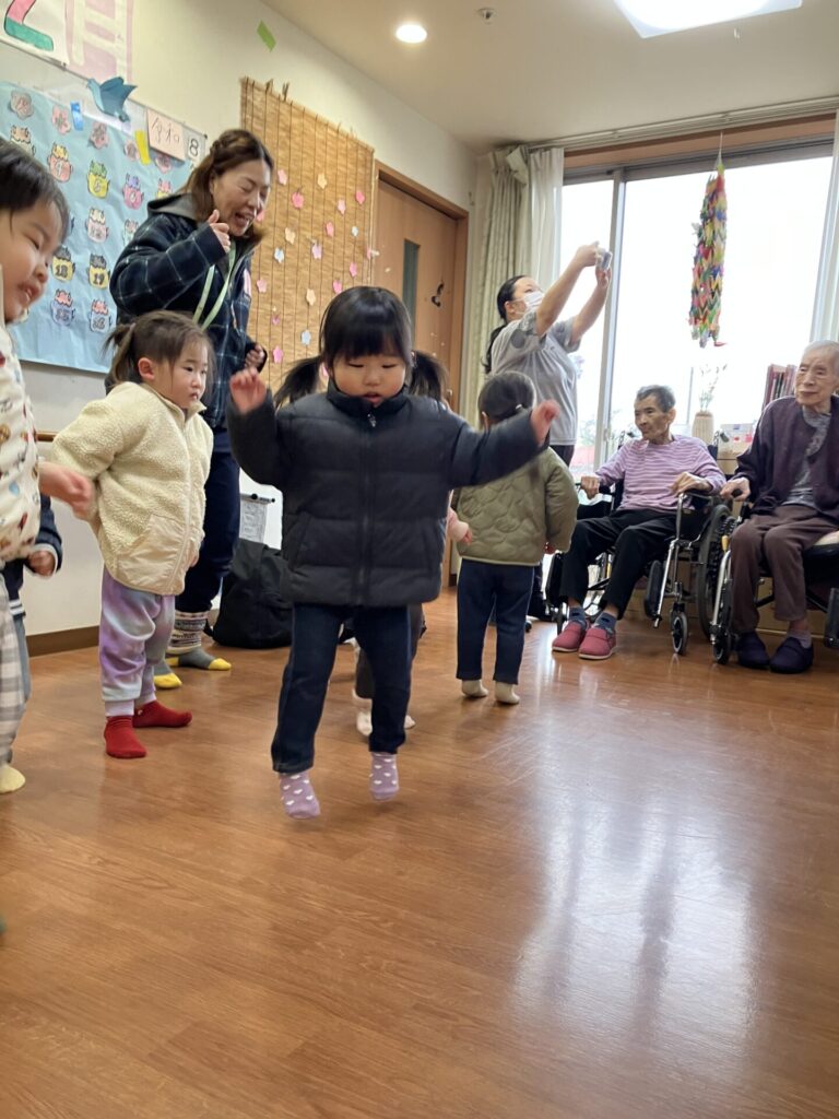 おじいちゃんおばあちゃんの前で『幸せなら手をたたこう』をちょっと緊張気味で披露してきました。