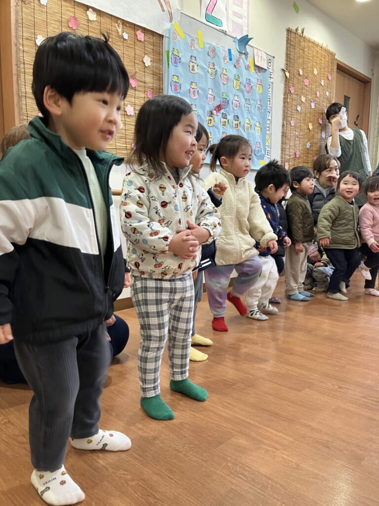歌や遊び、踊りを披露しました。可愛い姿を見せられ、子ども達も満足そうでした。