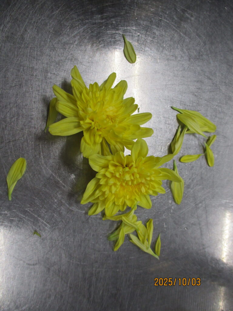 今日の給食では普段なかなか見る事のない菊の花の提供でした。菊の花は子ども達にちぎってもらい、白菜の甘酢和えで提供しました。思っていたよりも食べてくれる子が多かったです。酢豚、スープも残食少なく良く食べていました。