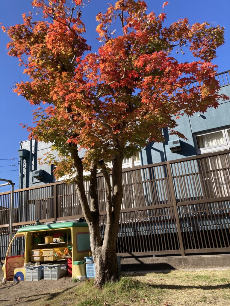 紅葉 もみじ かえで calendar_today 2025年11月17日 保育園の園庭にあるもみじも紅く染まり始めています。今年は、夏の次は秋がなくてすぐ冬が来たといわれるほど、暑さから寒さへ急激に変わりましたが、木々の紅葉は、秋を感じさせてくれます。